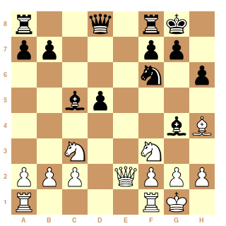 Noirs : Capablanca & Réti, Vienne, 11 et 12 mars 1914 :1 e4 e6 2 d4 d5 3 Cc3 Cf6 4 exd5 exd5 (variante d'échange de Svenonius) 5 Fd3 c5 6 dxc5 Fxc5 7 Cf3 0-0 8 0-0 Cc6 9 Fg5 Fe6 10 Ce2?! (10 h3) 10 ... h6 11 Fh4 Fg4 12 Cc3 Cd4 13 Fe2 Cxe2+ 14 Dxe2 (et voici la position du diagramme; je laisse la parole à Richard Réti :