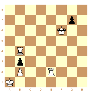 Le pion b2 Sert simplement à éviter un dual (autre série de coups menant également à la solution). Le pion noir b3 aussi.