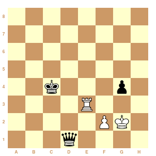 Note2 : Les blancs ont annulé assez facilement : La tour a fait uniquement mouvement entre e3 et g3, et le roi de son coté a exploré les cases g1, h2 et g2, aux noirs de trouver la combinaison en moins de 50 coups...