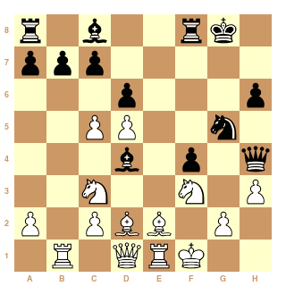 Oups ! J'ai négligé 13. ... Cb6 14.Dc2 puis vraiment ... e5.Désolé :'(