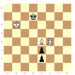 je pense l'avoir 1.Ff5+ Re7! 2.Te4+ Rd8 3.Fd7!! e1=D et la pointe Fb5 retirant au Noir Toute possibilité de se servir de leur Dame et le mat en e8 est imparable.