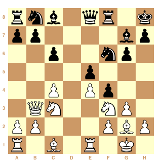 Mon adversaire a 600 pts ELO de plus que moi, mais HOP! pas d'hésitation à avoir, je joue Cxe5 (?) et sacrifie le cavalier pour les deux pions après Dxe5 Fxf4.13 coups plus tard je signe la feuille...défaite !
