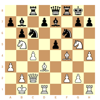 ouais j'aime bien cette position...beaucoup d'idée viennent toutes seules...on voit que le Cb5 a envie de finir en d6 avec une fourchette...mais le fou est la...puis vient l'idée Fxh7+,Rh8,Fg6 et hop ca fuse de partout chez les noirs avec une tour a donner...non ?Si on garde notre première idée en tete apres Fxh7+ la tour d1 amene un soutient sur d6...hummmj'aime bien...ma réponse serait oui.caviac