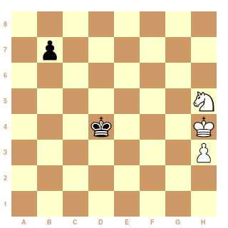 Belle nulle et c'est vraiment le cavalier qui est mal placé. Car si on décale la position vers le bas il n'y a plus nulle, de même si on inverse roi et pion.