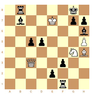 du diagramme : La partie s'est terminée avec 45. Cxh6+ gxh6 46. Dh8+