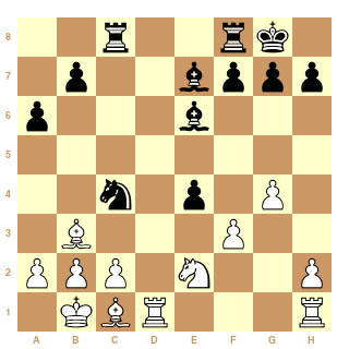on doit être depuis le 8eme coup à une éval entre -1 et -1.5 , à mon avis, les noirs vont concrétiser un pion bientot (ca se sens).