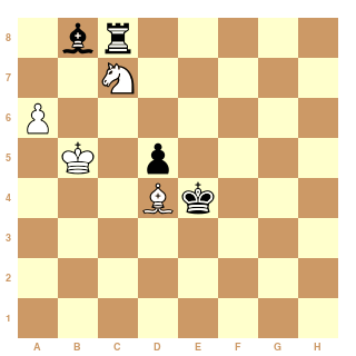 4...Te5 5.Cc8 Tc5+ 6.Rb7 Fe5 7.a7 Tc7+ 8.Rb6 Txc8 9.Rb7 1/2-1/2
