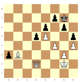 et vous constaterez que c'est perdu pour les noirs...Or, soit mon adversaire n'a pas trouvé le plan de gain, soit j'ai assez bien joué pour annuler 26 coups plus tard...