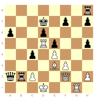 je n'ai pas reflechi des heures mais je trouve rien pour les blancs apres c3 il y a bcp de menaces noirs, je vois pas comment les blancs s'en sortent ... sur Tb1 et Dxc2 ou Dc4 selon ce que joue les blancs , voir eventuellement des sacrifices sur Fc1 je crois pas que les blancs ont le temps de faire quelque chose... je me trompe ?