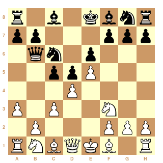 • Un des plans serai 8.Fe2 et 9.0-0 et jouer sur le centre ou l’aile dame avec la poussé en b3. ( Je donne juste pour info cette possibilité mais n’allons pas le traiter )