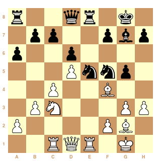 Quand on va plus loin avec les modules à partir de 22...Cxd5 23.exd5 e4 on obtient des variantes très spectaculaires où les Blancs jouent avec du matériel en moins mais avec des menaces sur le Roque noir et ils obtiennent la nulle.