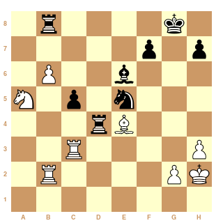 A posteriori miser sur leur pion c par 41...c4 aurait été meilleur, quoique le pion b6 blanc restât très fort.