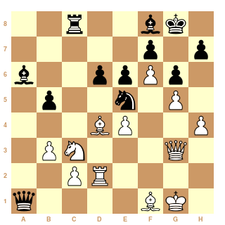 Je vois ce que tu veux dire, Salvador. En fait cela ressemble plus (du côté blanc) à une espagnole fermée (sisi) sur le plan stratégique. Les noirs par contre n'ont pas leur espace (et donc leur contre-jeu) à l'aile-dame parce que leurs pièces bloquent les pions et que le Fou en c4 est difficilement à agresser par les pions. Echanger ce fou, semble une très bonne idée. Par contre, je suis totalement contre l'idée de Fg4 tant que la position reste close (sauf s'il retourne en e6 après h3).