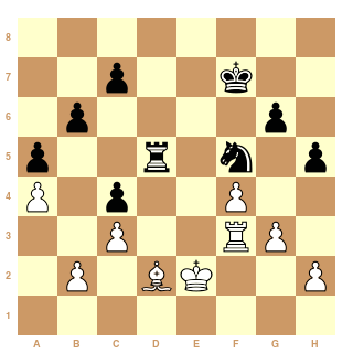 • 52... Tc1 53.Cg3 Rf6 54.Cf5 Td1+ 55.Rc5 Re6 56.Rb6 1-0