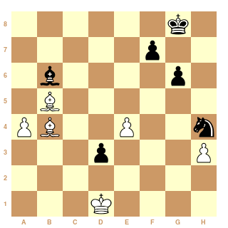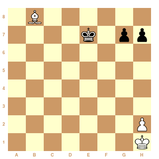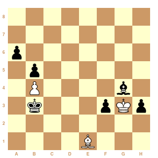 Et sortir le fou serait inutile, on jouerait Re2 avec les noirs quand même, et on peut ainsi passer en finale en donnant le pion h pour éloigner le roi blanc, récupérer le fou blanc en poussant ensuite f2, et on s'en retourne récupérer b4.