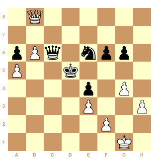 Enfin, sauf peut-être le point d' interrogation à 33Rf2, car à mon avis les noirs doivent toujours jouer pour le perpétuel après le gain de la dame.