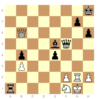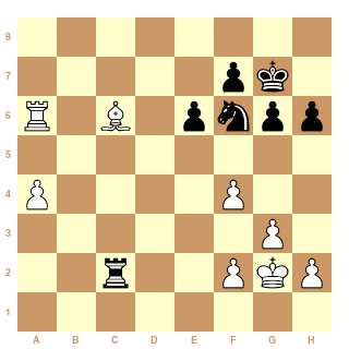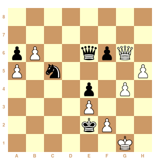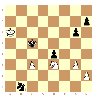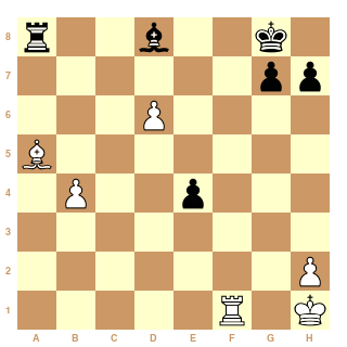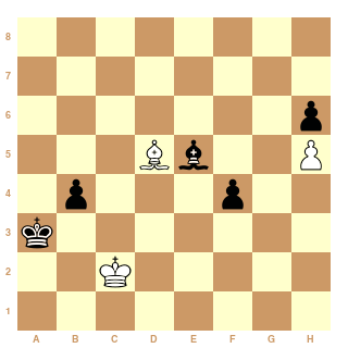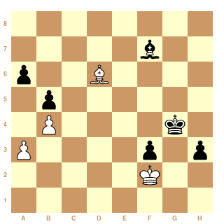 Le roi noir va aider à avancer le pion f et récupérer le fou au passage, puis après, décider la partie au choix avec le pion b ou le pion h.