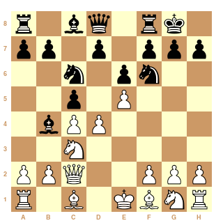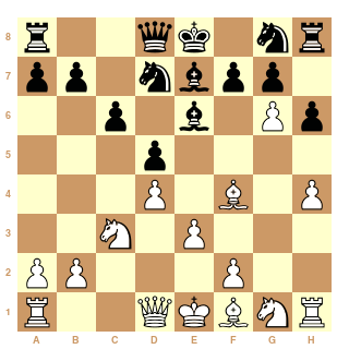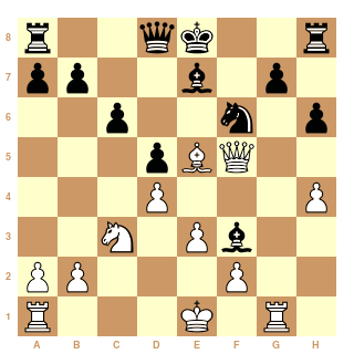 Il me semble que les noirs auraient du jouer 12...Fg4 (au lieu de Ff5) avec un clouage gênant.