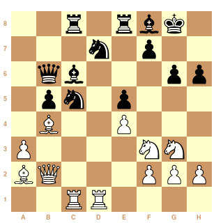 On pourrait penser qu'il est issu d'une partie espagnole (même si le pion en a3 peut jeter un doute, le placement des pièces sur tout l'échiquier est caractéristique de l'espagnole voire de l'italienne!), pourtant c'est une semi slave.