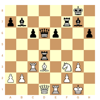 Si Marie avait joué 30...Td7 avec l'idée 31 Ce3 Rf7 elle aurait eu l'avantage et pratiquement c'est très désagréable de défendre avec les blancs une telle position à cause du centre et du fort fou...On peut donc comparer avec la position juste au dessus et reveni sur ton : Pourquoi Marie n'a pas joué l'évident 20...Dd6??