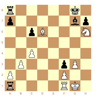 nulle apres une lutte sauvage dans une est-indienne 1.c4 Nf6 2.Nc3 g6 3.g3 Bg7 4.Bg2 O-O 5.d4 d6 6.Nf3 Nc6 7.O-O Bf5 8.b3 e5