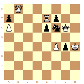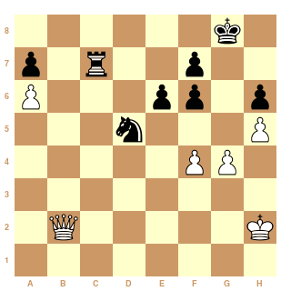 "noirs: Pa7, Td7, Cf6" (*) ressemble fort à une forteresse non ? i.e. nulle assurée pour les noirs s'ils le désirent. La dame ne pouvant pas agacer le roi noir et l'avance prématurée des pions blancs semblant perdante !