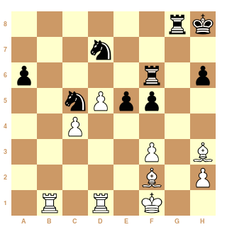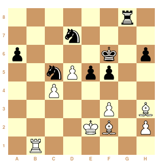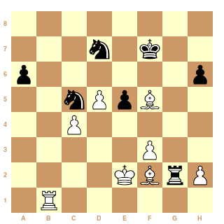 Qui dort dine! je pense que tu vas jouer Cfd7 et ici Fou en f2 tu joues quoi ? De toutes les façons au lieu de la prise en b6 on peut jouer Fou f2 et forcer la position ci dessous.