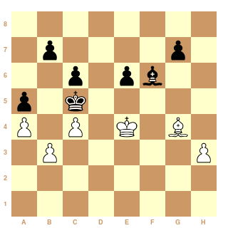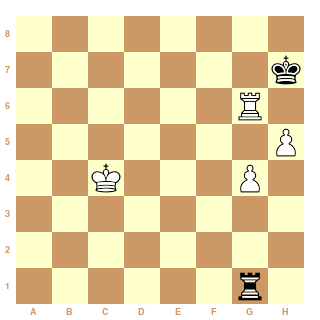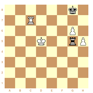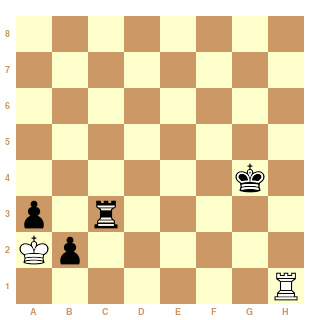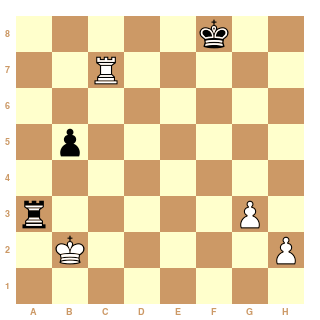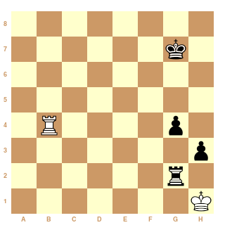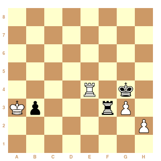Dans la position ci-dessus, les noirs ne parviennent pas à se soustraire aux échecs de la tour : le roi blanc a stoppé l'avancée des pions et fixe la tour noire, à l'aide notamment de la tour blanche braquée sur le pion faible. Ainsi, après 75...Tg2. Nulle.