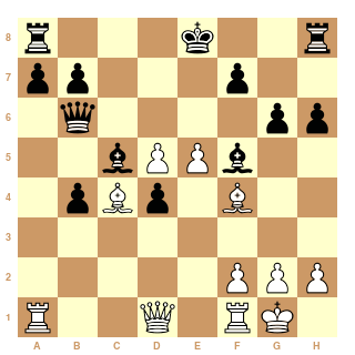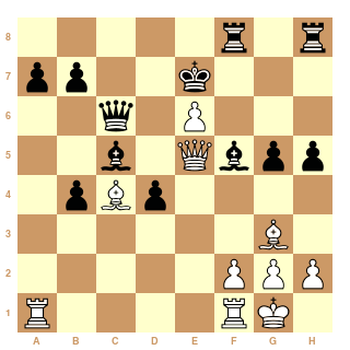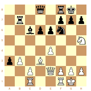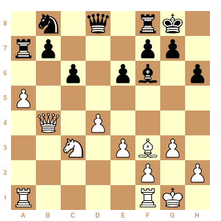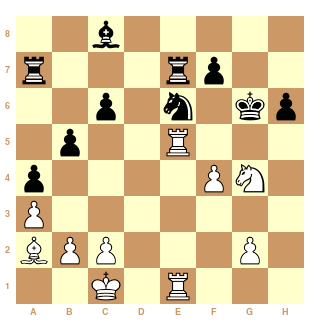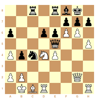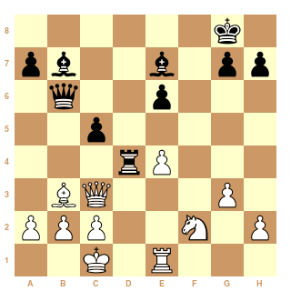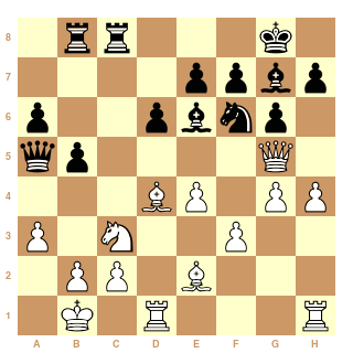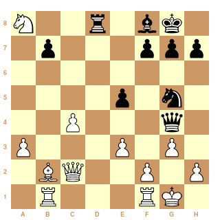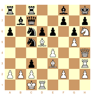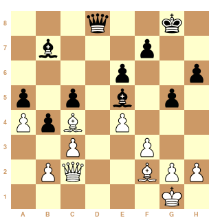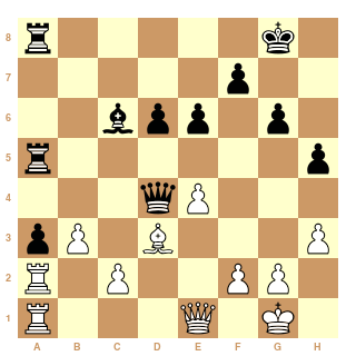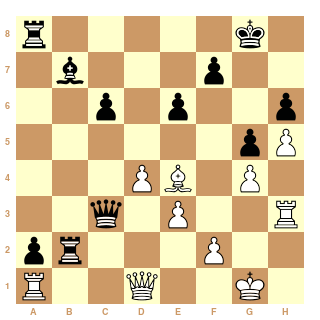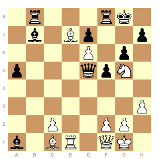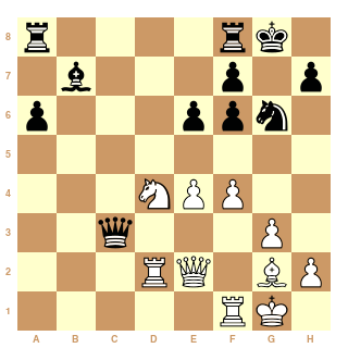 Au 21ème coup, Cg4?? les Blancs ont dérapé et peuvent s'estimer heureux de s'en tirer avec la nulle.