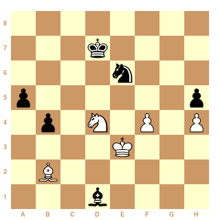 Je préfère la finale avec Cavalier contre le fou noir des blancs, mais le problème c'est qu'il reste encore bcp de pièces, et l'avantage latent des blancs persiste à cause de cela il me semble.
