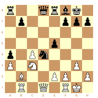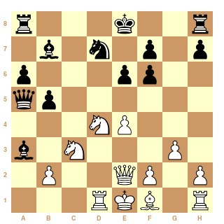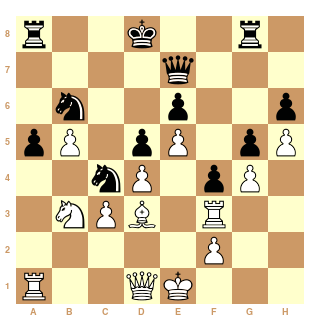 Voilà, Maze pousse au centre : 15...e5. Maintenant 16. de Fxe5 17.Fd2, et les blancs peuvent voir venir.