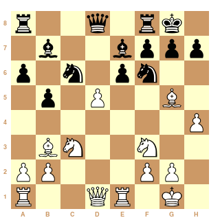 Maze - Bauer, après 12...Te8. C'est assez symétrique. Tkachiev a obtenu plus avec l'acceptation de son gambit dame.
