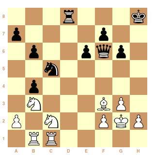 18. Fxa6 Txc2 19. Cxc2 Dxb2 20. Tfc1 Td8 21. Rg2 g6 22. Cb3 Ce4 23. Fb7 Cc5 24. Tab1 Df6 25. Ff3