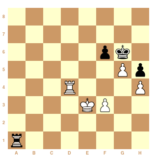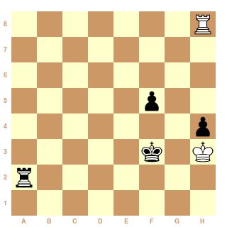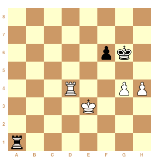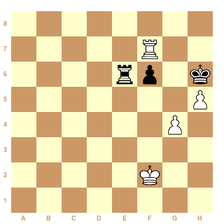 56.Rf3 Th1 57.Rg3 Ta1 58.Td6 Rg7 [bien sûr 58...Ta3+ 59.Rf4 Ta4+est possible, mais ceci est instructif] 59.Td7+ Rg6 60.h5+ Rh6 (transposant dans Rublevsky-Chuchelov)