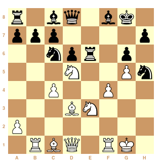 d5 9. Bg2 dxc4 10. Be3 Qa5 11. Bd2 Qh5 12. Ne3 O-O 13. Qa4 Nd4 14. Qxc4 e5 15.