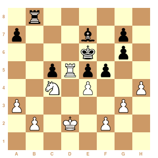 44...Fb6 et c'est là qu'intervient la position critique, avec pour enjeu de trouver le meilleur chemin pour le cavalier, celui emprunté par Ponomariov (45.Cd4) ne garantissant pas le gain.