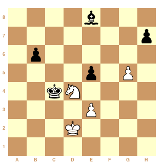 1... Nd7 2. g4 hxg4 3. hxg4 Nf8 4. Bxf5+ Kg7 5. Bc3 (ou 5. Ka4 Ng6 6.Bxg6) 5... Bxc3 6. Kxc3 gagne