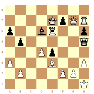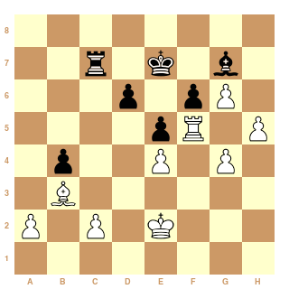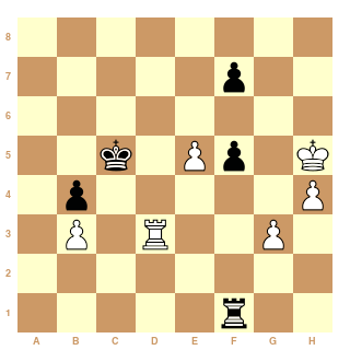 39...g5?? 40.Re2?? g4?? Mais une analyse plus approfondie semble montrer qu'il n'en est rien et que c'est gagnant de bout en bout pour les Blancs dans toutes les variantes. Ils gagnèrent 9 coups plus tard.