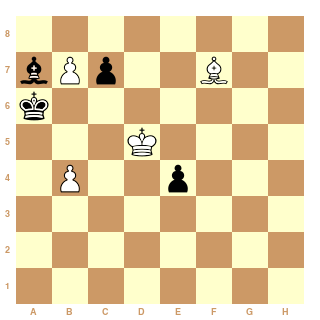 Dans le cas présent, c'est beaucoup plus simple : on ne peut gagner une finale de Fous de couleurs opposées, sans autre figure ni espoir de pion passé, que s'il y a un mat. Donc amener le Roi en a8. Avec l'arme absolue du zugzwang, que même des GMI oublient parfois d'utiliser (voyez Naka-Soko). Chez Gorgiev c'est un peu plus subtil, car il faut neutraliser le PN "e" au bon moment.