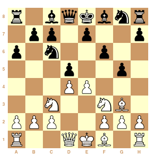 D'ailleurs, après le 5...a6 noté "!" dans les commentaires, le simple 6.e4 met déjà fin à la partie. (dxe4 Cxg5 ou encore e6 exd5 exd5 Cxg5, mais il n'y a pas besoin de calculer pour comprendre que les noirs sont perdants)