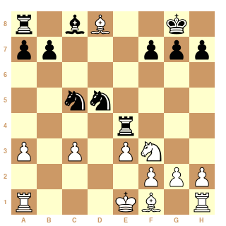 Re8 15. f3 Nef6 16. Bc4 Qe5 17. Qa2 Rf8 18. Kf2 Nb6 19. Bb3 Nbd5 20. Re1 Bd7