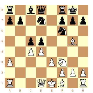 Les Blancs peuvent aussi jouer 8.Fg5! au lieu de 8.e3 et rien n'empêche les Noirs de rechercher une amélioration. Le copier/coller ne suffit pas contre un champion du monde et pourquoi ne serait-il assisté de secondants siliconés, ce qui est le lot quotidien d'un champion du monde.