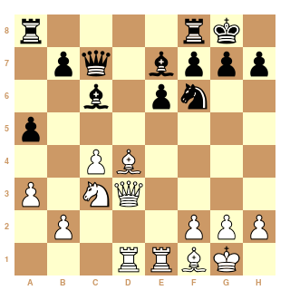 Avec le programme, j'ai joué 14.Dd3 0-0 15.Ta-d1 Da5!, car la Dame noire peut jouer en f5 ou en h5.