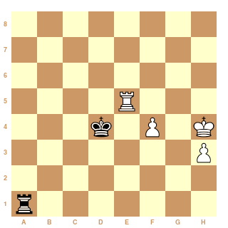 Tf1 Rg5 Tg1+ Rf6 et peut-être faut-il simplement lâcher le pion h et couper le roi verticalement en poussant le pion f ?! Effectivement ça semble dur.