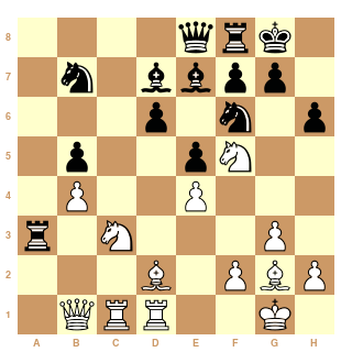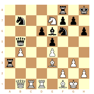 Début pourri de Hou qui parfois m'étonne dans l'ouverture (elle devrait avoir un secondant à 2700 plutôt que 7 entraîneurs à 2400). Malgré ce cavalier en Fianchetto, il faudrait un autre niveau qu'Ushenina pour la réfuter :-)