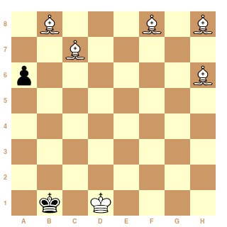 @Petiteglise, Ducouloir te dit qu'il y a un fou de trop, c'est qu'il a évidemment la solution avec un ou plusieurs fous de moins! Le module doit donner un avantage énorme du genre + 20 alors + 15 avec un fou de moins c'est gagnant pour lui. Il n'y a que des fous mais cette position lui fait rappeler un mat de cavalier... Suis-je le seul à trouver cela insupportable? Mat en 7 coups pour celle de PE et 9 pour bibi mais je préfère celle de petiteglise car la position finale de bibi comporte 3 fous.