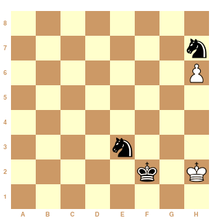 J'ouvre un livre de finales avec ce genre de position et je suis sur qu'il va me dire que les pions b doivent être plus prêt pour que le Cavalier puisse avoir une chance de dominer le Fou (en d4 et d3 par exemple)