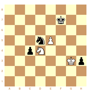 S'il a perdu au temps dans cette position, c'est assez bizarre, d'autant que le dernier coup noir est assez évident. A moins qu'il hésitait avec Rg7 pour troquer son pion h avec le pion f qui devrait aussi amener à une nulle assez facile à mon avis.