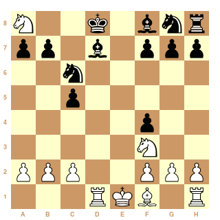 Il faut noter que tout cela se retrouve avec couleurs inversées. J'en ai fait l'expérience deux fois contre le GM italien Godena. La première fois, j'ai laissé joué e5 et cela s'est terminé par une nulle, la seconde fois j'ai été plus ambitieux et j'ai perdu :