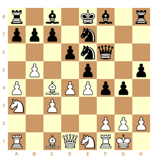 En fait ça me fait penser à une Mar del Plata, où les noirs déroulent leurs pions vs course à l'aile dame, on pourrait naïvement penser que l'absence du coup c4 et la tension centrale plus le fait de ne pas avoir de pion f3, font que le contre jeu blanc devrait être plus rapide que dans l'Est-Indienne, ce n'est pas le cas concrètement mais je peux comprendre la naïveté en question.